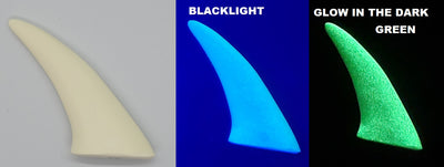 Glow in the dark claws will glow in the dark once properly charged under a bright light. By "charged" we mean you let them sit under the bright light for an extended period of time. The best light is either direct sunlight, or a UV light. These are all cast in an opaque resin.