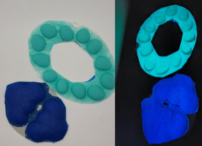 *Glow powder will not change the color of the dyed item in the light, however the color of the dyed item might affect what color the item shows in the dark. Example: A pink item with green glow powder might actually look white in the dark, not green*